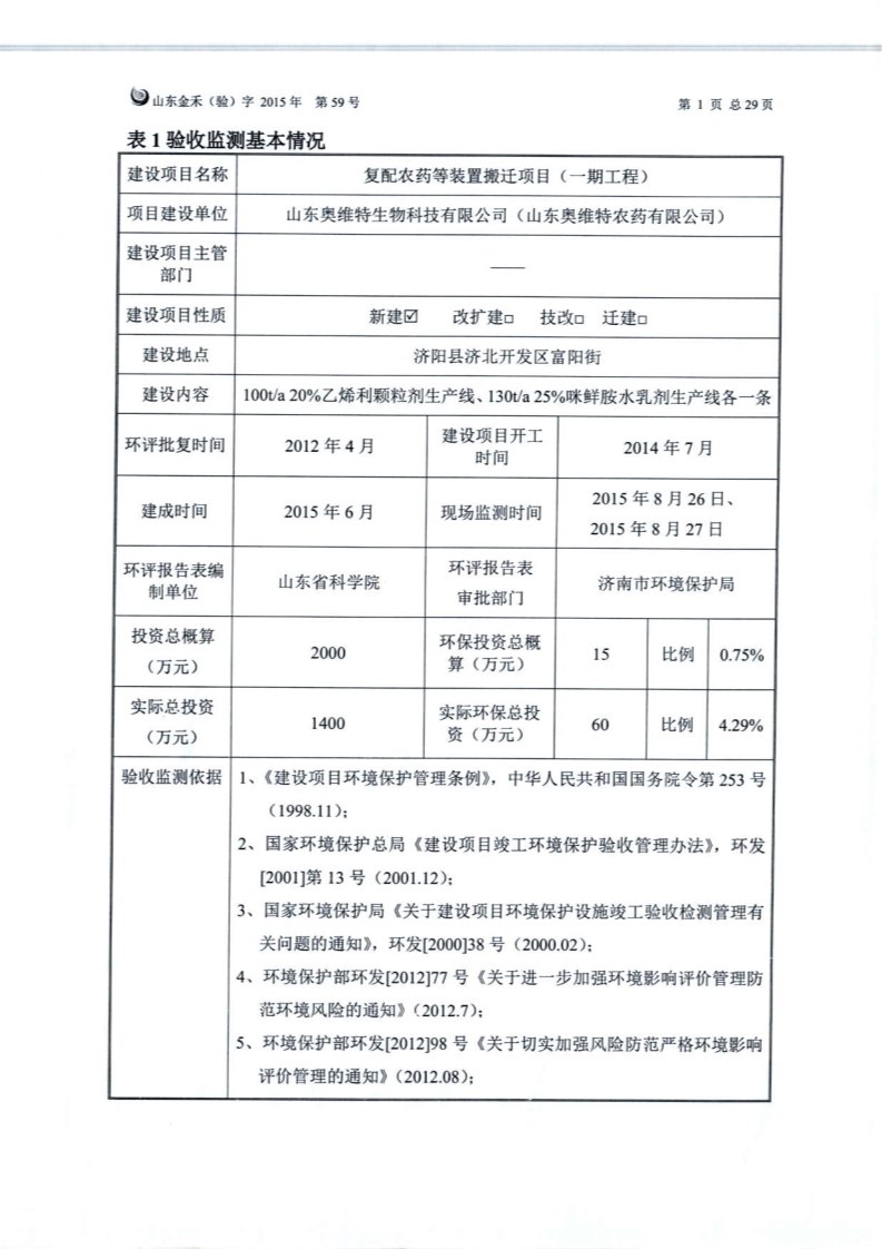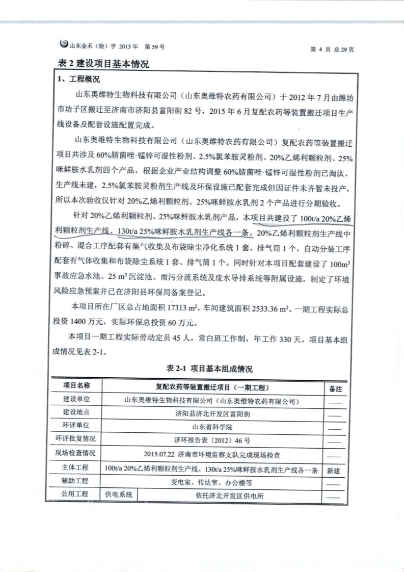 山東奧維特生物科技有限公司---復配項目環評驗收